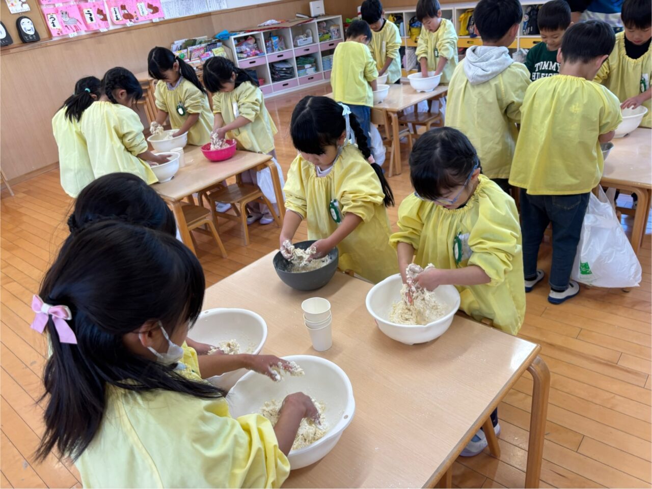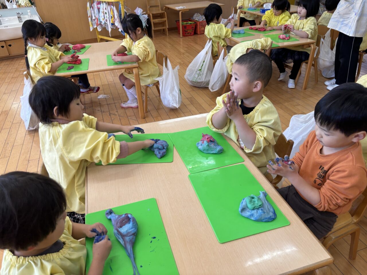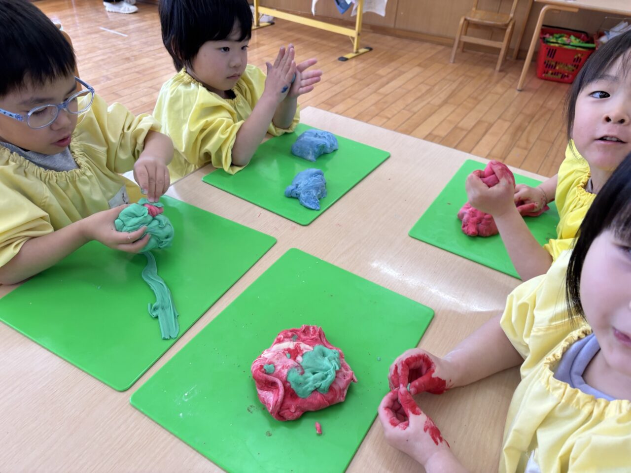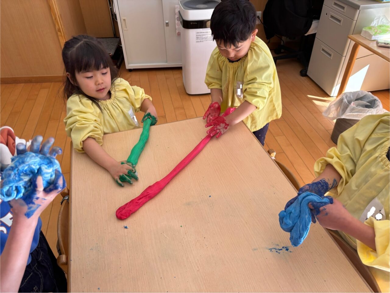 年中組は前日にこねて、今日は色つけからです!