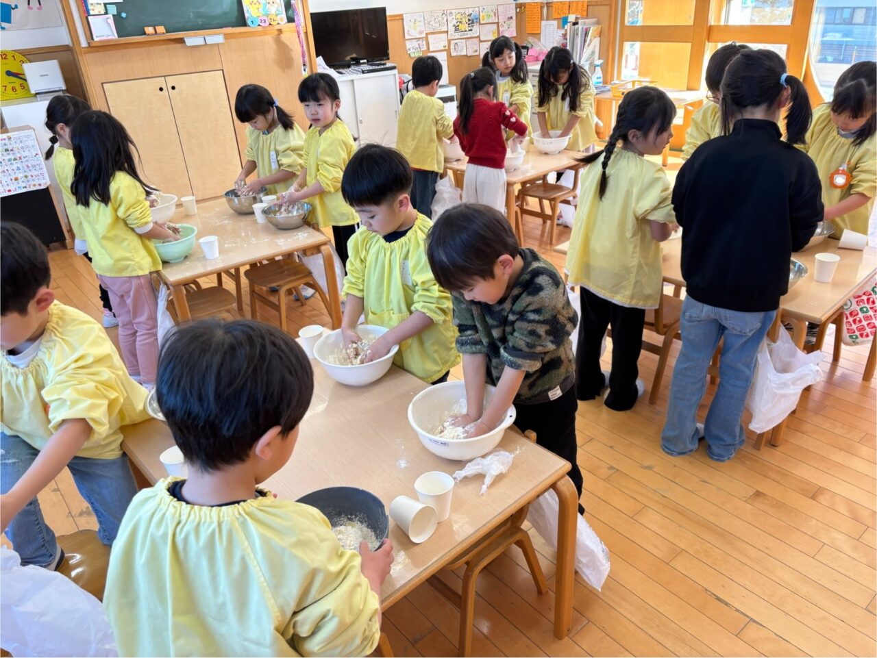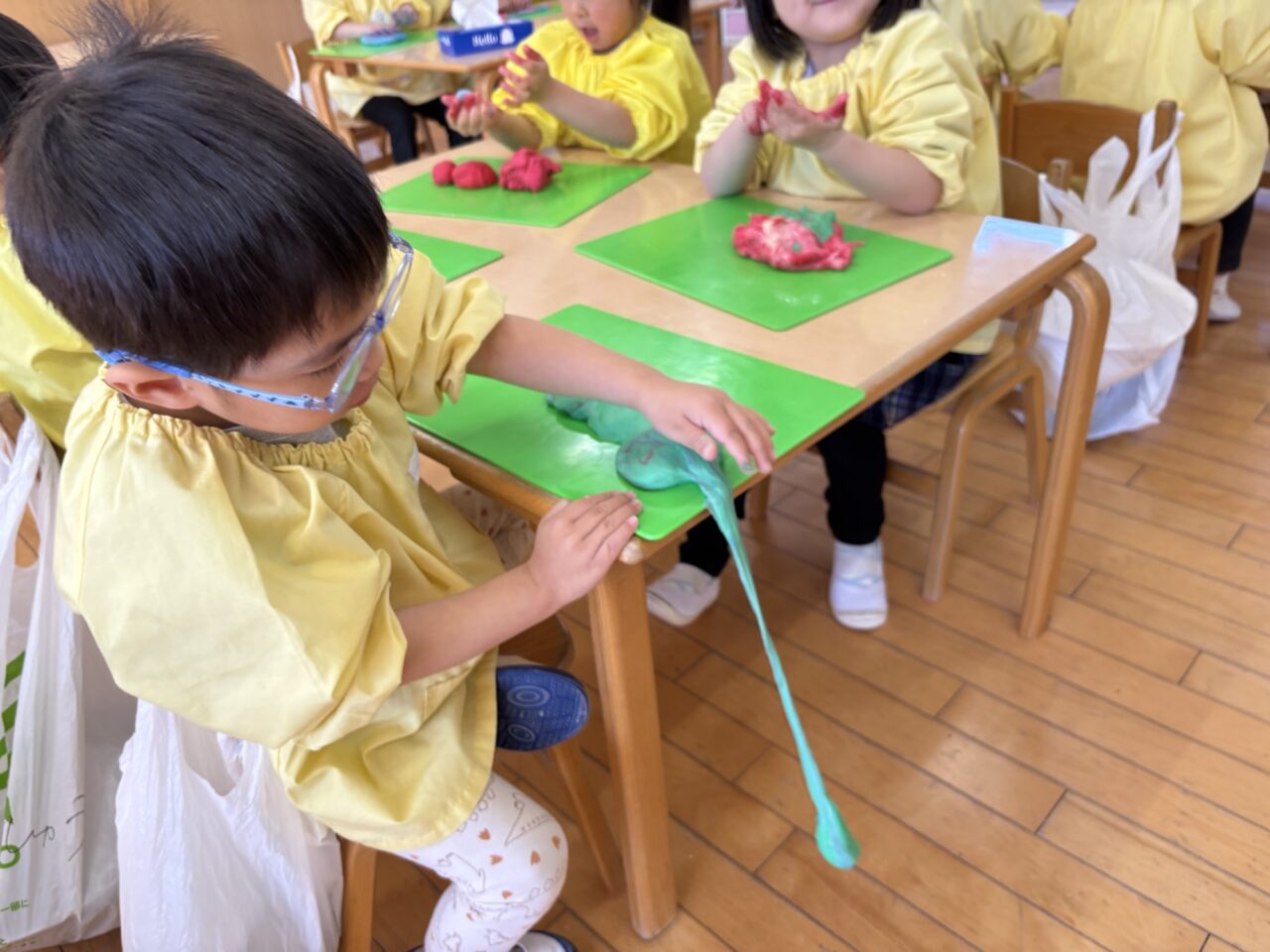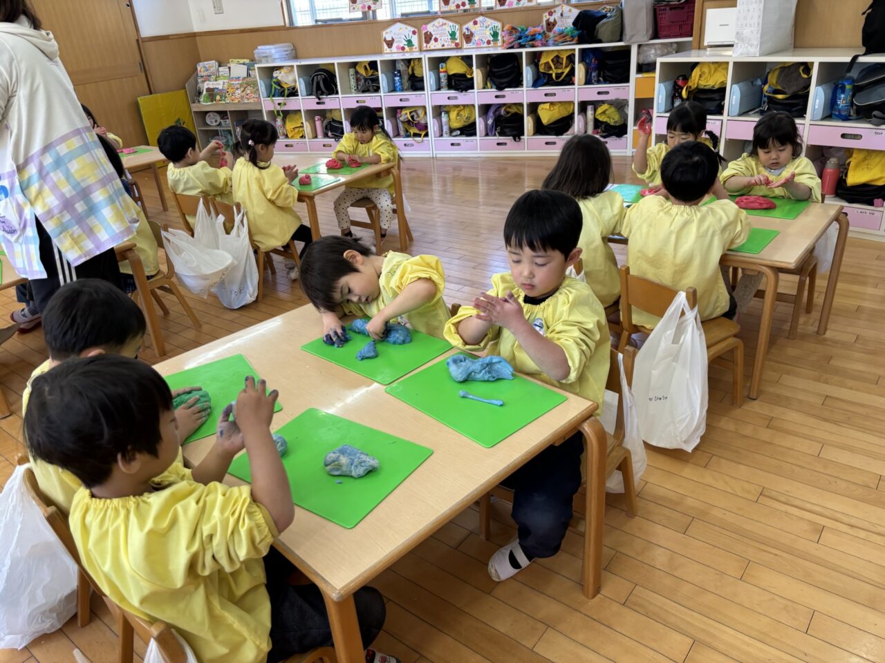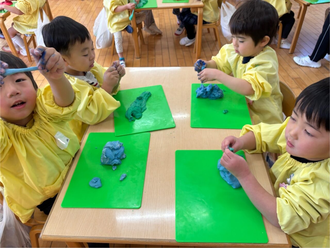 年中組は前日にこねて、今日は色つけからです!