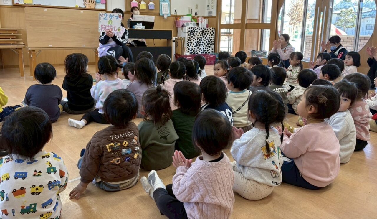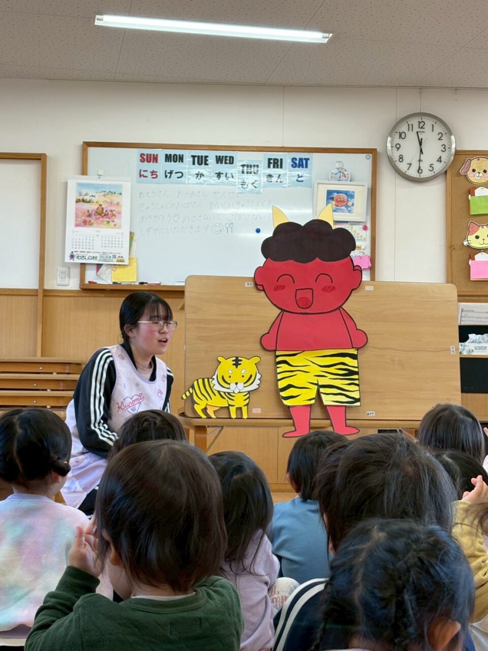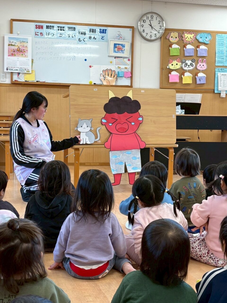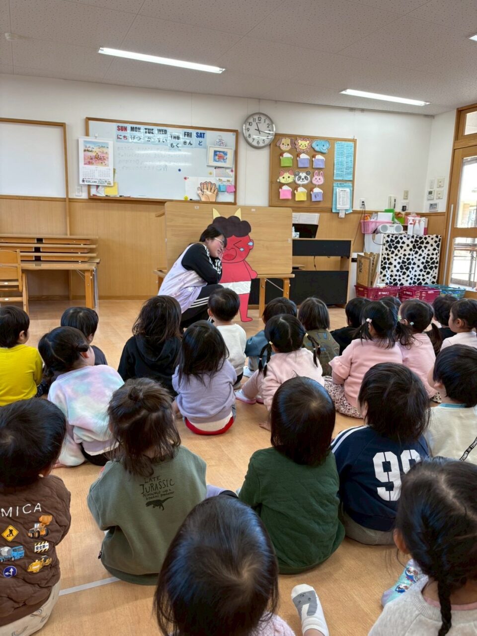 2月の紙芝居は、豆まきやバレンタインのお話しでした