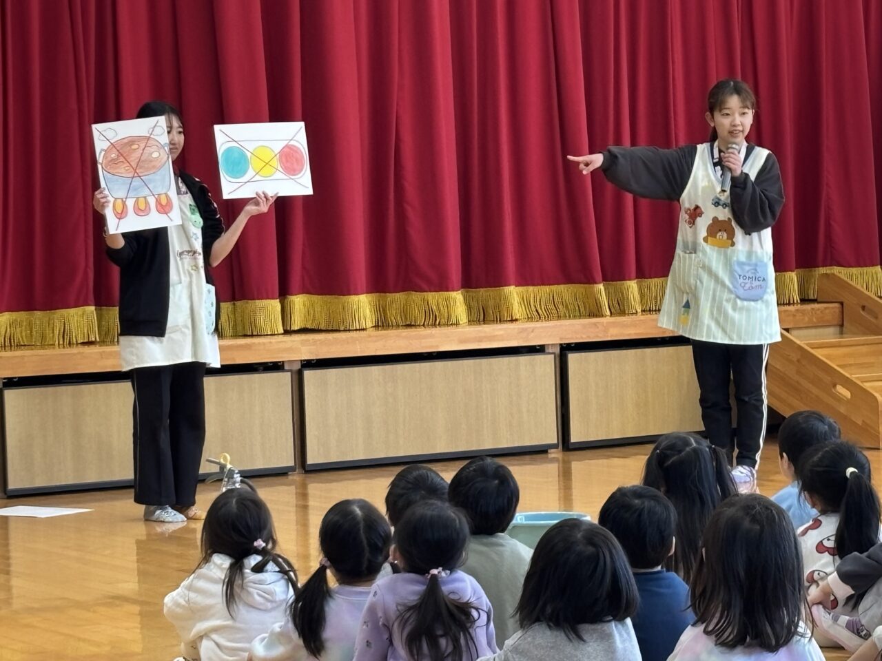 園長先生や先生のお話しをしっかり聞いて、地震や火災などの災害についてお勉強しました。毎月、避難消火訓練をがんばりましたね!