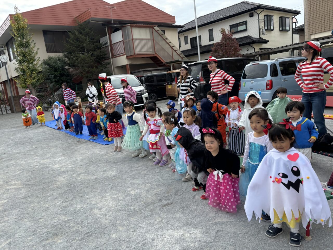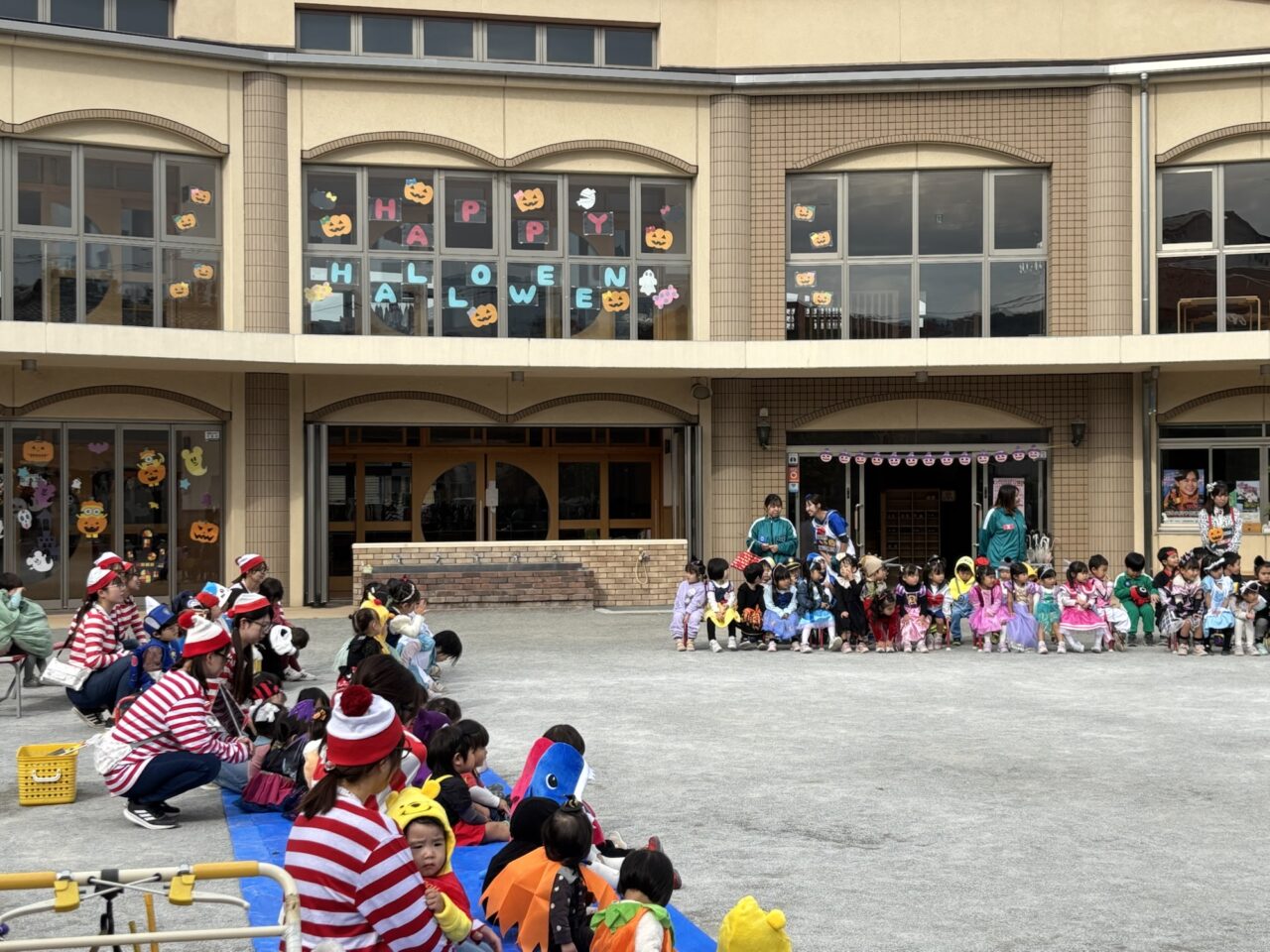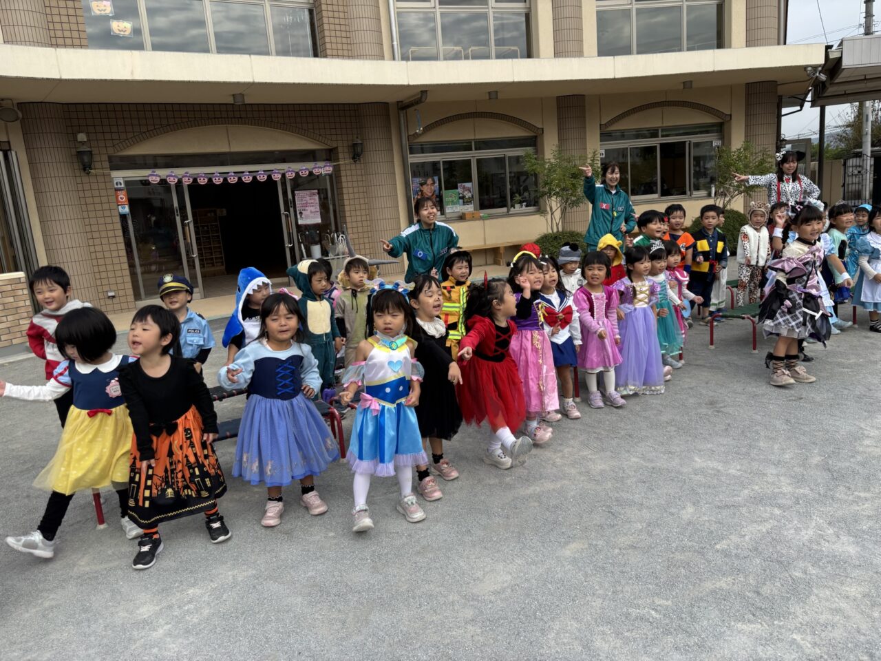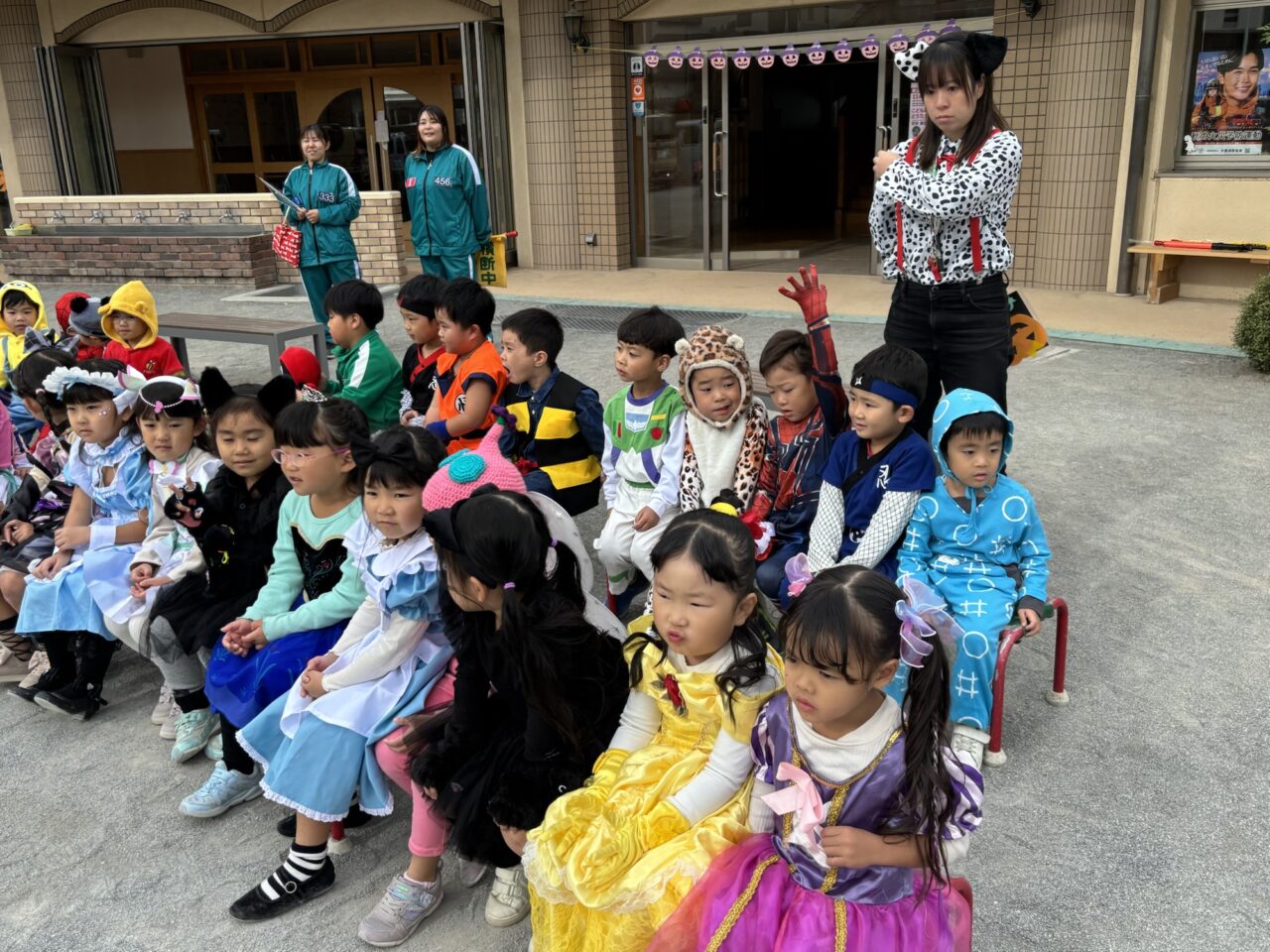園庭に集まって、お友達の仮装を見たりハロウィンのダンスをしました