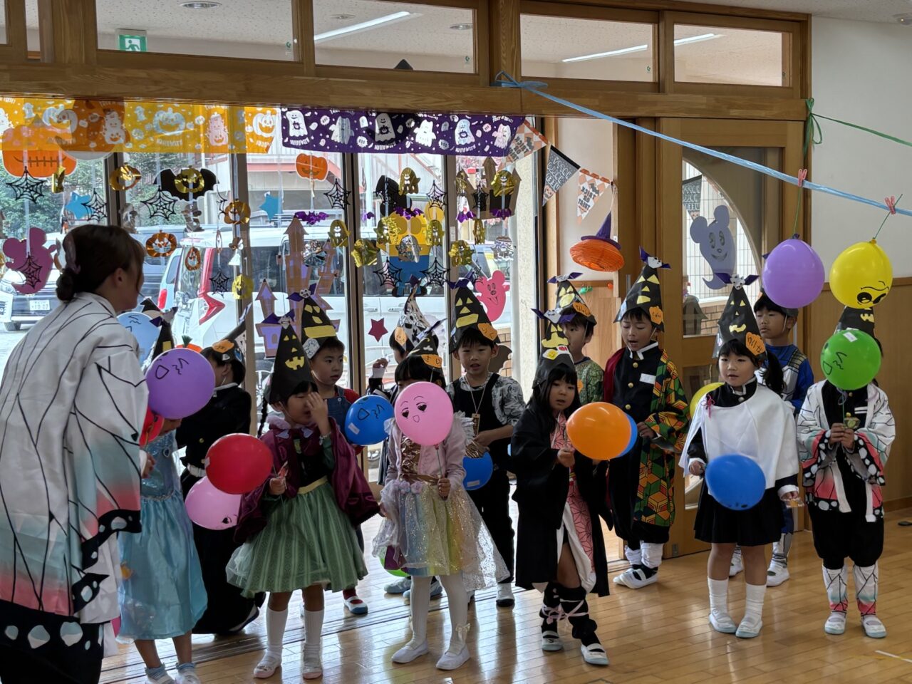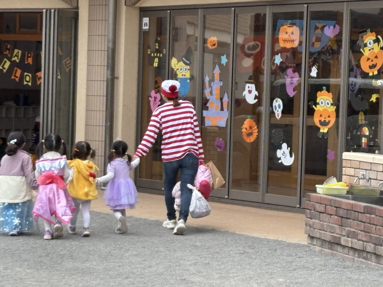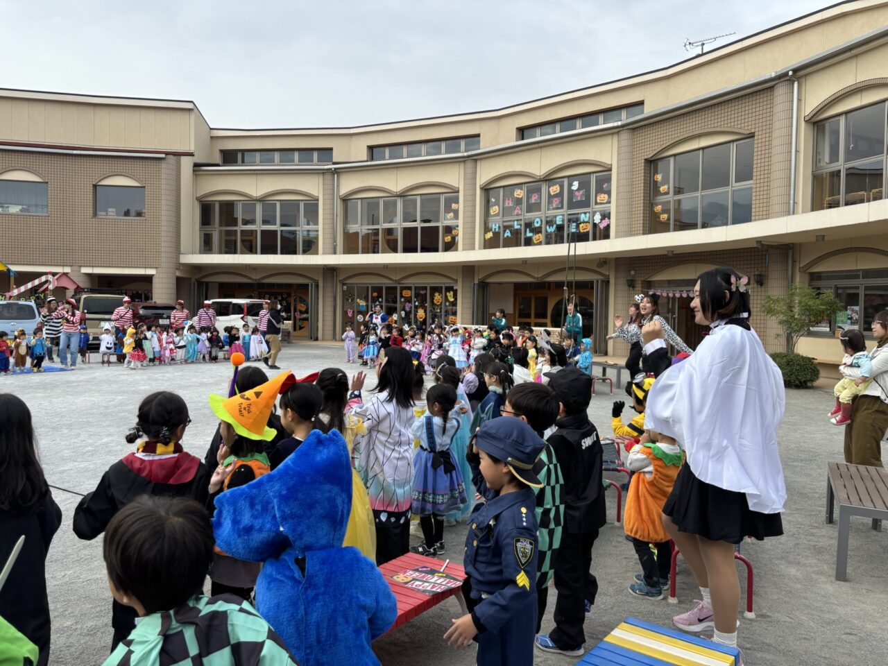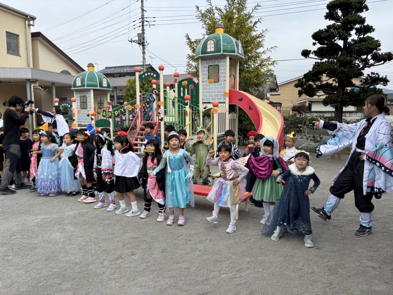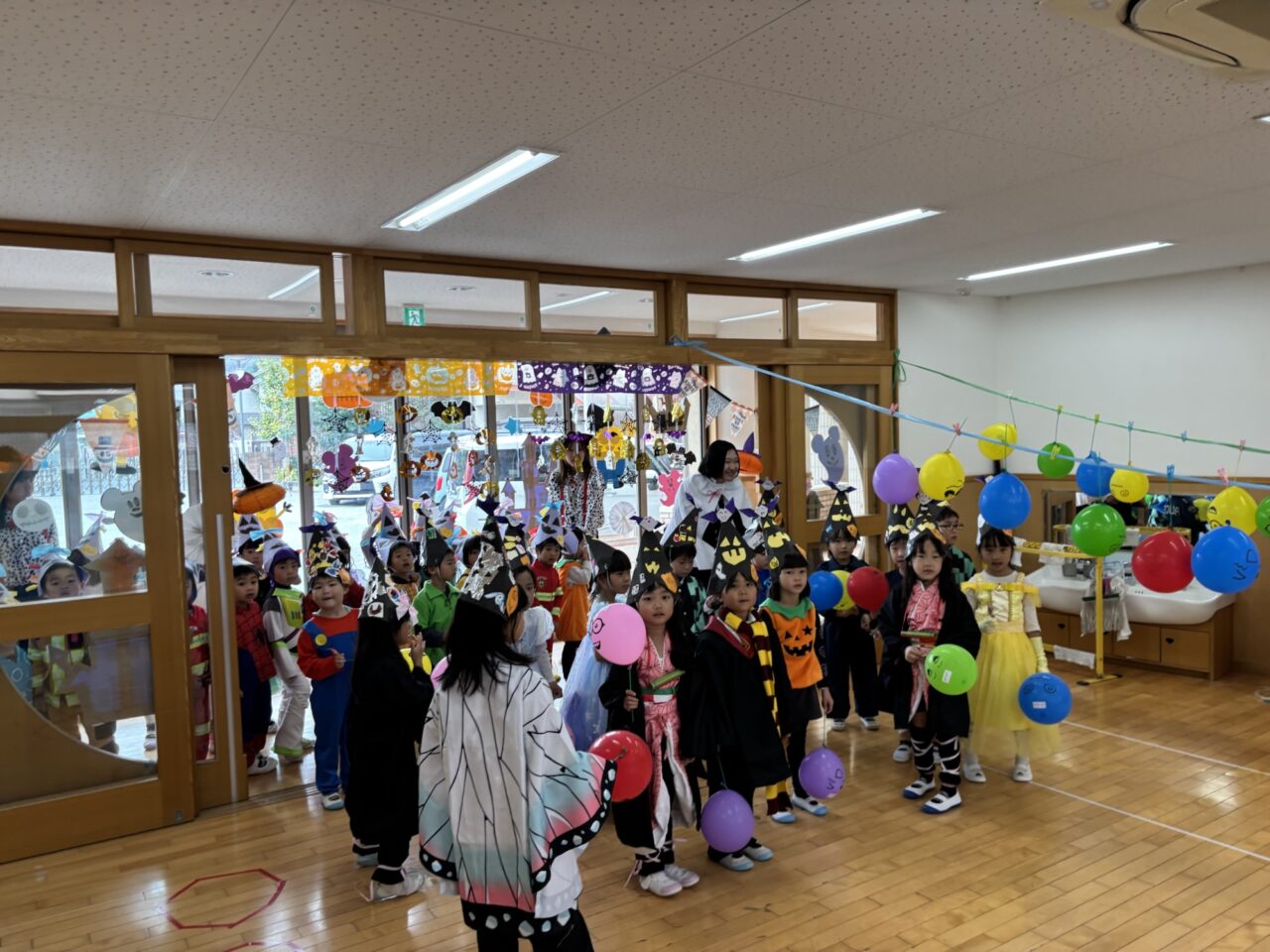 園庭に集まって、お友達の仮装を見たりハロウィンのダンスをしました