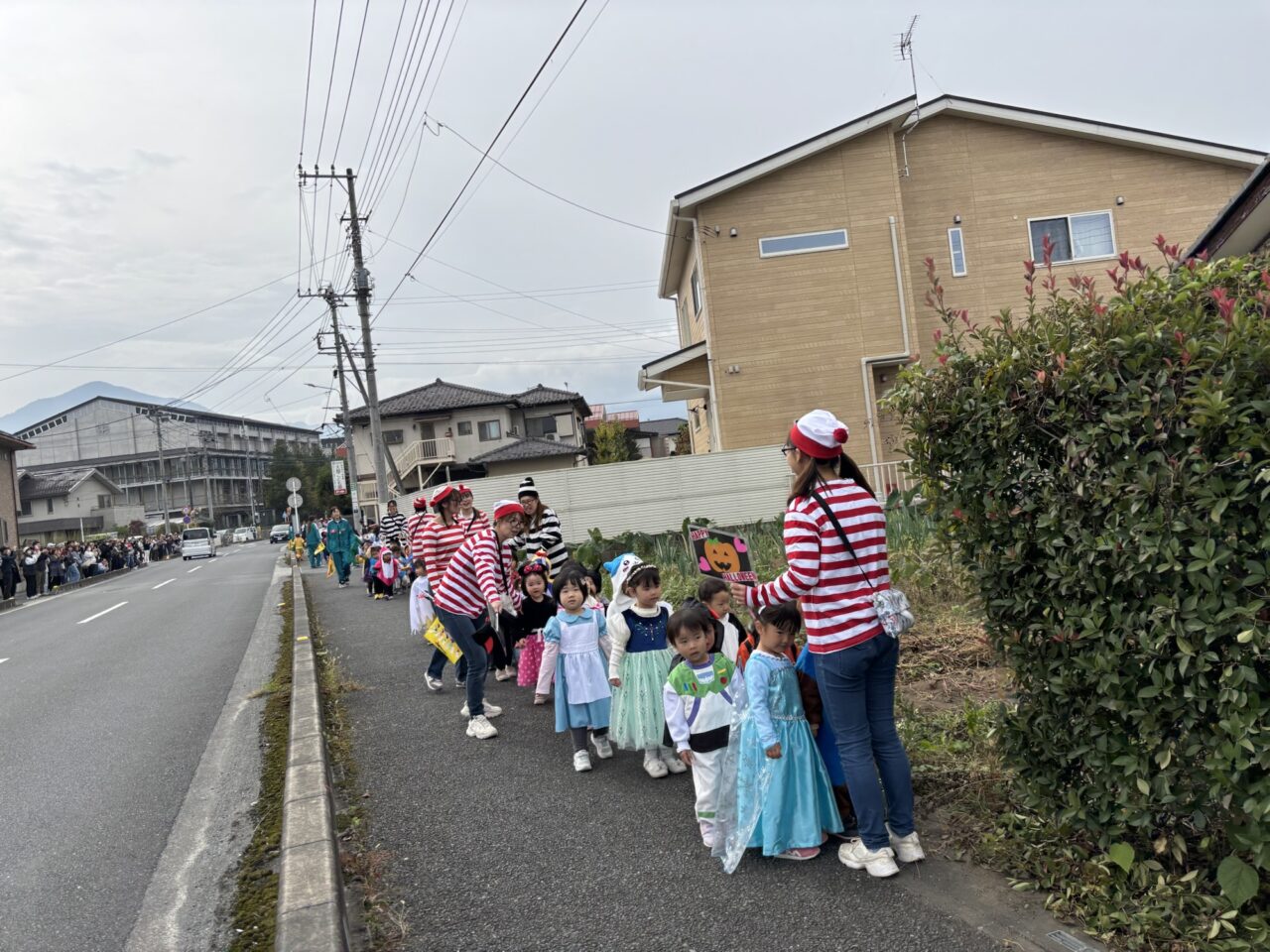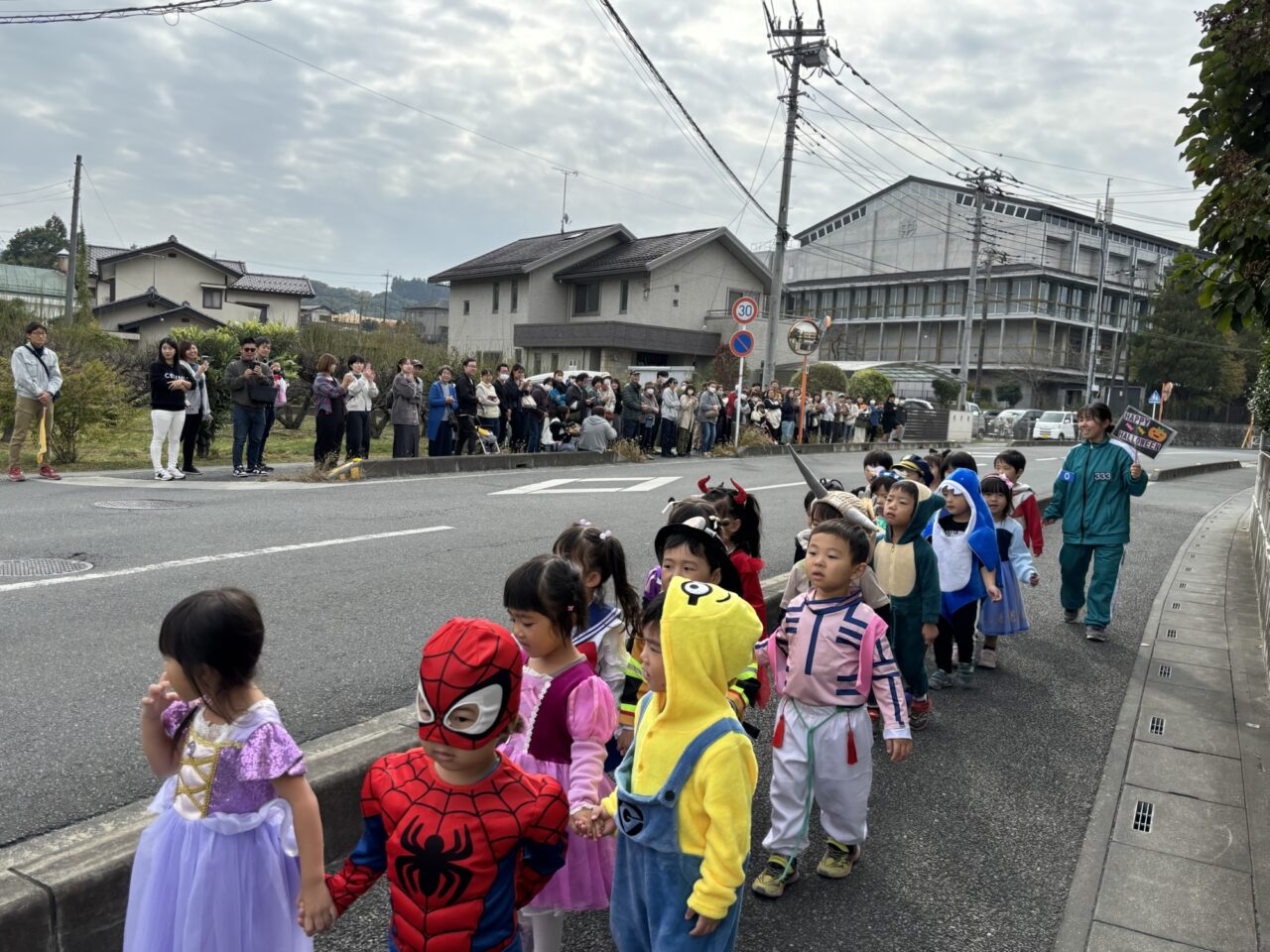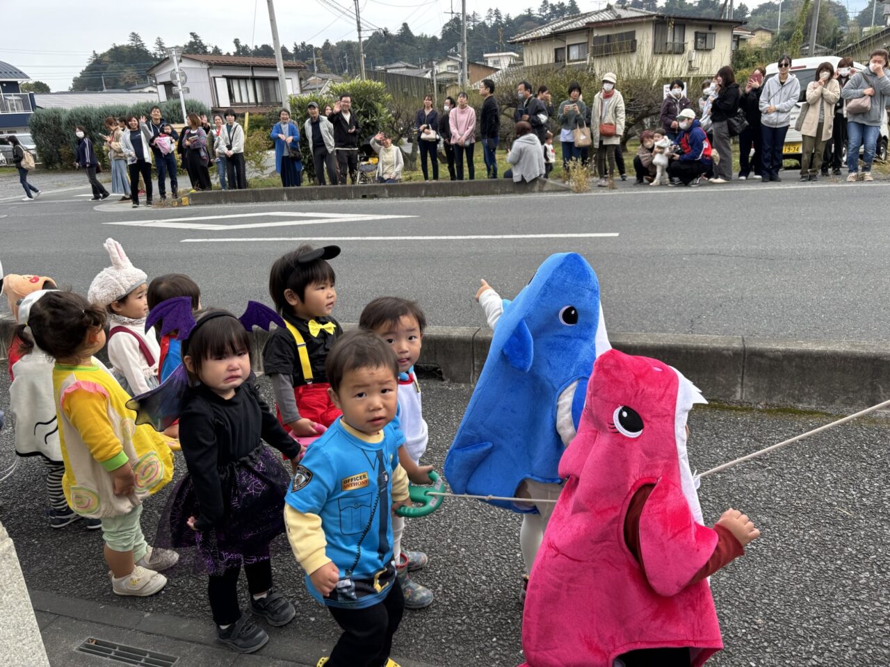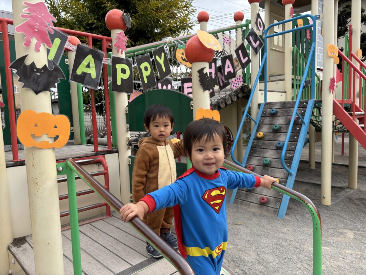 園庭に集まって、お友達の仮装を見たりハロウィンのダンスをしました